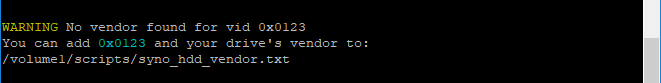 In this case the script will show you the vendor ID and advise you to add it to the syno_hdd_vendor_ids.txt file.