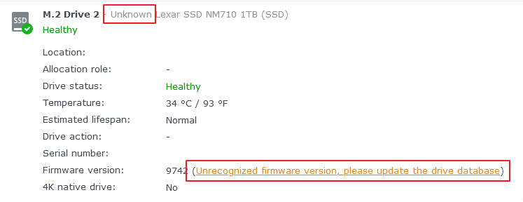 If DSM doesn't know the brand of your NVMe drives they will show up in Storage Manager as Unknown brand, and Unrecognised firmware version.